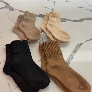A simple, timeless design that pairs beautifully with any outfit. From relaxed home days to cool-weather outings, these socks add a touch of effortless elegance.